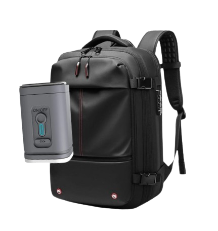 Our Vacuum Compression system is extremely easy to use. You can either use one of our Zoom Mini Vacuum or any household vac will do. (The secret to our vacuum, is that it is compact and can be carried on your trip so you have it for the ride back!) All you will need to do is open the vacuum compression compartment, and when all your stuff is packed, zip up the bag, open the circular tab, place vacuum over, and suck out all the air.